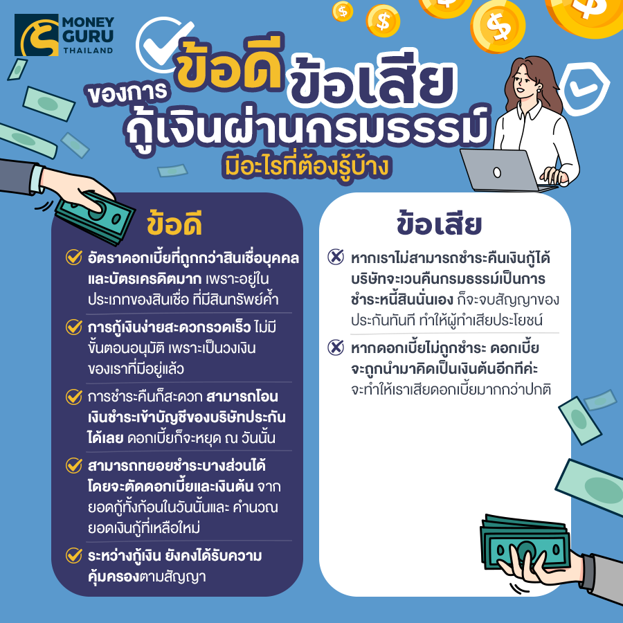 ในยุคเศรษฐกิจฝืด หมุนเงินไม่ทัน มีความจำเป็นต้องใช้เงิน หลายๆ คนอาจจะคิดถึงการขอสินเชื่อกับธนาคาร ซึ่งจะมีการพิจารณาระบุคุณสมบุติเงื่อนไขต่างๆ ไม่ว่าจะเป็น คุณสมบัติผู้ขอสินเชื่อ วงเงิน ประวัติการขอสินเชื่อ ซึ่งในหลายเคส พบว่า ขอสินเชื่อไม่ผ่านเพราะคุณสมบัติไม่ผ่านเกณฑ์ หากต้องการและจำเป็นต้องใช้เงินจริงๆ อาจจะต้องไปกู้นอกระบบแทน แต่ยังมีข่าวดีสำหรับคนที่มีประกันสุขภาพหรือประกันชีวิต รู้หรือไม่ว่า ยังมีอีกหนึ่งช่องทางที่ให้เราสามารถกู้ยืมเงินได้ง่าย ไม่ต้องมีผู้ค้ำประกัน และอัตราดอกเบี้ยต่ำอีก นั่นก็คือ การกู้ตามสิทธิกรมธรรม์ประกันชีวิต หรือ กู้เงินผ่านกรมธรรม์ประกันชีวิตนั่นเองค่ะ