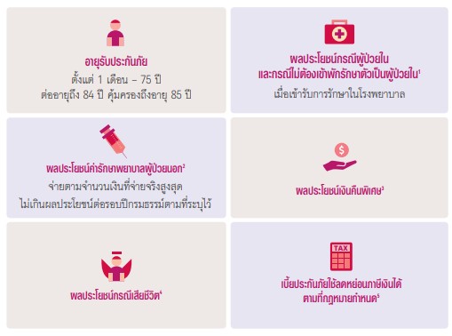 ความคุ้มครองแบบเหมาจ่าย คือ บริษัทประกันจะเป็นผู้กำหนดวงเงินความคุ้มครองใน 1 ปีให้คุณ ดังนั้น คุณไม่ต้องกังวลเกี่ยวกับค่าใช้จ่ายในการรักษาพยาบาลรายครั้งเลยว่าจะเกินวงเงินหรือไม่
