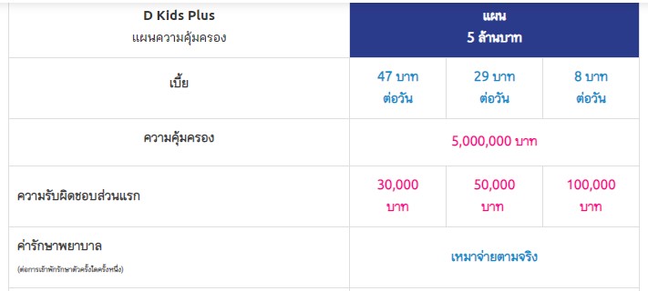 เบี้ยเด็กอายุ 1 เดือน ค่าห้อง 1,500 บาท เบี้ยเริ่มต้นได้ตั้งแต่ 23,000 บาทขึ้นไป ซึ่งครอบคลุมค่าห้อง ค่าแพทย์ ค่ารักษา ค่าผ่าตัดต่างๆ ทั้งผู้ป่วยนอกและผู้ป่วยใน ทั้งนี้ขึ้นอยู่กับแต่ละบริษัทประกันว่าจะมีเงื่อนไขรายละเอียดในแต่ละความคุ้มครองอย่างไรบ้าง