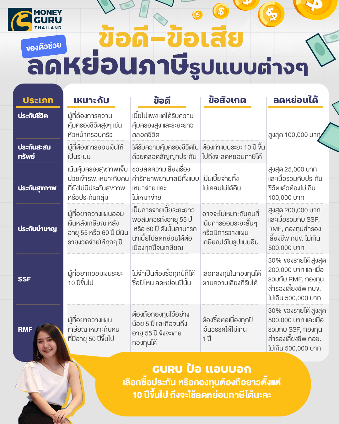 วันนี้เลยขอแนะนำสรุปข้อดีข้อเสีย หรือความเหมาะสมในการเลือกตัวเลือกเพื่อลดหย่อนภาษีเพื่อเป็นแนวทางในการตัดสินใจกันค่ะ