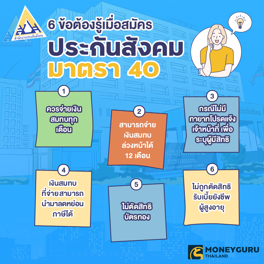 อย่างที่ทราบกันดีว่าประกันสังคมเป็นสวัสดิการที่รัฐบาลให้การสนับสนุน เพื่อให้ผู้มีรายได้ มีหลักประกันในการใช้ชีวิต มีความมั่นคง และมีเงินเก็บส่วนหนึ่งเตรียมพร้อมสำหรับวัยเกษียณ การจะเลือกสมัครประกันสังคมมาตราไหน ผู้สมัครก็ควรศึกษาหลักเกณฑ์การส่งเงินสมทบ และเงื่อนไขการรับสิทธิประโยชน์ทดแทน เพื่อช่วยวางแผนคุ้มครองความเสี่ยงในเรื่องต่างๆ ได้อย่างเหมาะสมนะคะ