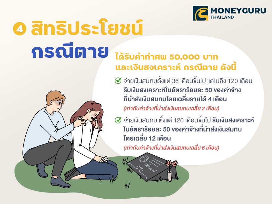ได้รับค่าทำศพ 50,000 บาท และเงินสงเคราะห์ กรณีตาย ดังนี้