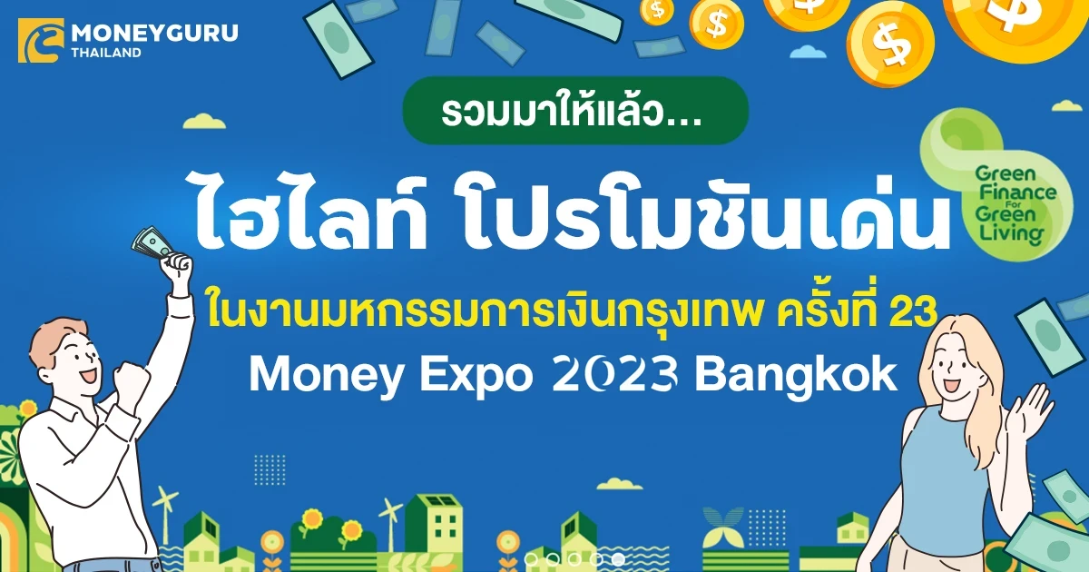 เริ่มแล้ว! งานมหกรรมการเงินกรุงเทพ ครั้งที่ 23 MONEY EXPO 2023 BANGKOK ที่เปิด 7 โซนบริการทางการเงินการลงทุนครบวงจร ในแนวคิด "Green Finance for Green Living การเงินสีเขียวเพื่อชีวิตสีเขียว" โดยงานจัดขึ้นระหว่างวันที่ 11-14 พฤษภาคม 2566 ชาเลนเจอร์ 2-3 อิมแพ็ค เมืองทองธานี ซึ่งภายในงาน มีกิจกรรมต่างๆ ที่น่าสนใจมากมาย (ดูรายละเอียดกิจกรรมที่น่าสนใจภายในงาน เพิ่มเติม) และที่เด่นที่สุด คือโปรโมชันจาก แบงก์/นอนแบงก์/ประกัน/บล./บลจ. ที่ยกทัพโปรโมชันร้อนแรงแห่งปี มาแข่งกันอย่างดุเดือด จะมีโปรโมชันอะไรน่าสนใจบ้าง เรารวมมาให้แล้ว ที่นี่ !!