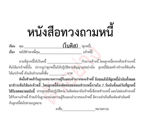 2. ทวงหนี้ได้ในวันจันทร์-ศุกร์ เวลา 8.00 - 20.00 น. และวันหยุดราชการ เวลา 08.00 -18.00 น.