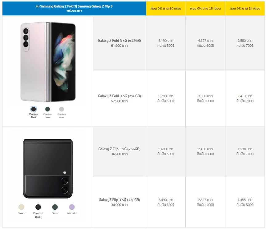 จอง Galaxy Z Fold 3 | Galaxy Z Flip 3 5G ผ่อน 0% นานสูงสุด 24 เดือน พร้อมรับเครดิตเงินคืนสูง จัดได้ทุกเครือข่าย ช็อปมือถือชั้นนำทั่วไทย AIS, DTAC, TRUE