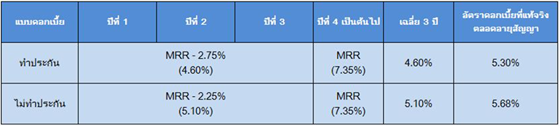 - อัตราดอกเบี้ยที่แท้จริงข้างต้นเป็นเพียงตัวอย่าง อัตราดอกเบี้ยสำหรับสินเชื่อที่อยู่อาศัยวงเงิน 3 ล้านบาท อายุสัญญา 10 ปี MRR = 7.35% (ณ วันที่ 14 เม.ย. 63) และใช้การผ่อนชำระค่างวดปกติที่คำนวณตามเงื่อนไขที่ใช้ในโฆษณาฉบับนี้เท่านั้น ซึ่งอาจมีความแตกต่างตามเงื่อนไขการกู้ยืมของลูกค้าแต่ละราย