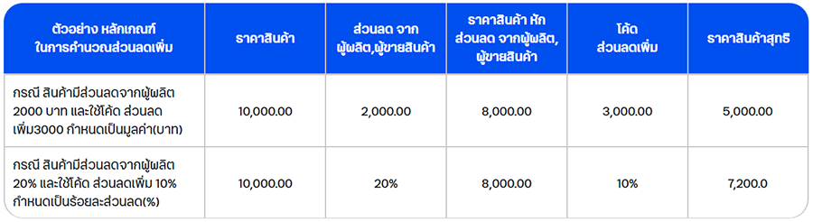 ** ตัวอย่าง หลักเกณฑ์ในการคำนวณส่วนลดเพิ่ม