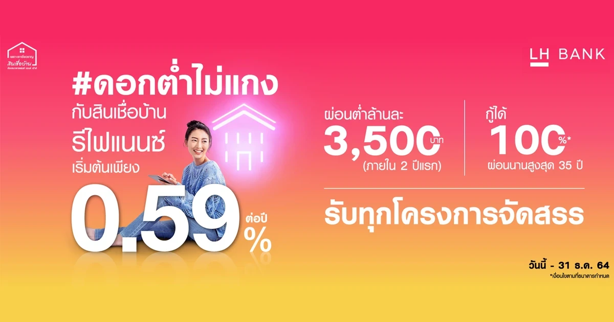#ดอกต่ำไม่แกง กับสินเชื่อบ้านรีไฟแนนซ์ ดอกเบี้ยต่ำ!! เพียง 0.59% ต่อปี รับทุกโครงการจัดสรร วันนี้ - 31 ธ.ค. 64