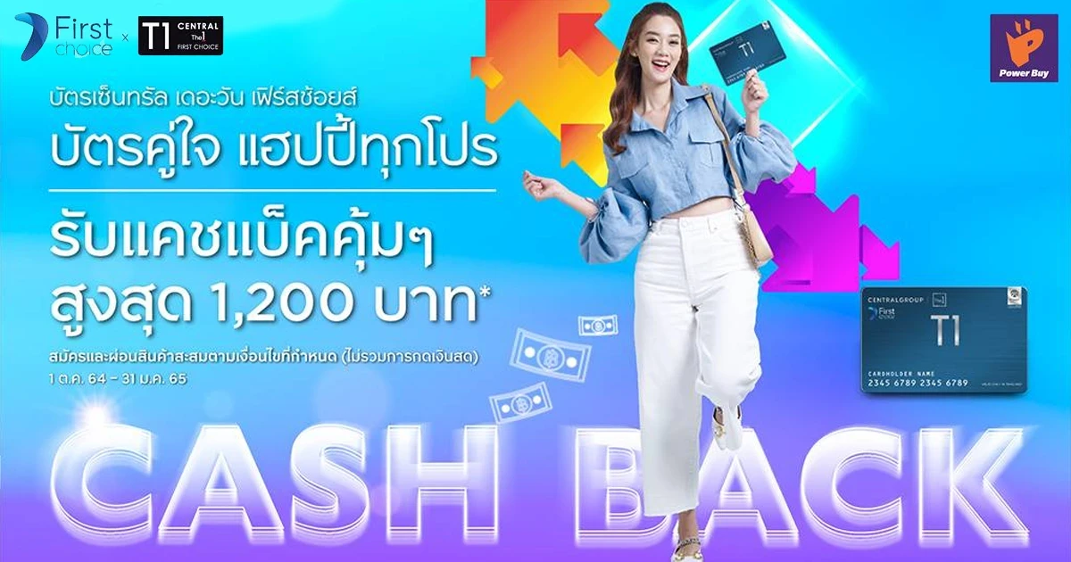 สมัครบัตรเซ็นทรัล เดอะวัน เฟิร์สช้อยส์ ดีลดีย์ มีไว้ไม่ตกเทรนด์ รับแคชแบ็คคุ้มๆ สูงสุด 1,200 บาท*
