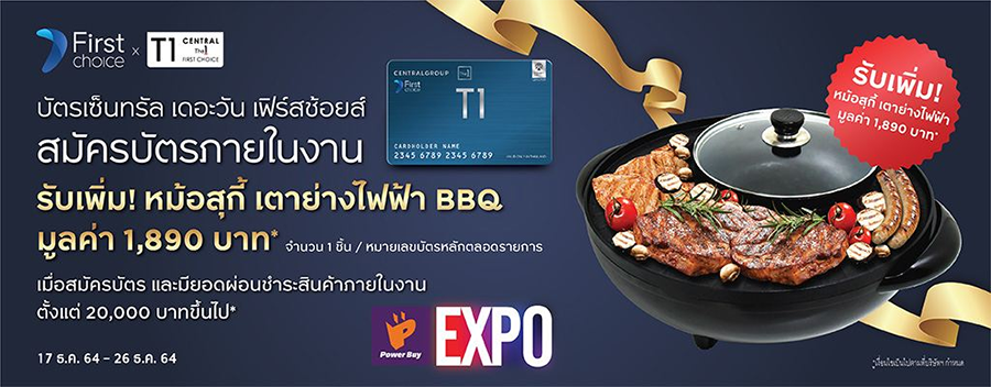 - เงื่อนไขการรายการส่งเสริมการตลาดนี้ สำหรับลูกค้าใหม่ที่สมัครบัตรเซ็นทรัล เดอะวัน เฟิร์สช้อยส์ เฉพาะบัตรหลักที่ได้รับอนุมัติ ตั้งแต่วันที่ 17 ธ.ค. 64 - 26 ธ.ค. 64 ในงาน Power Buy Expo เท่านั้น