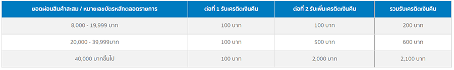 ต่อที่ 2 : รับเครดิตเงินคืนสูงสุด 2,000 บาท* เมื่อสมัครและมียอดผ่อนสินค้าสะสม ณ ร้านค้าในเครือ เซ็นทรัล กรุ๊ป ที่ร่วมรายการ