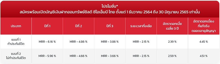*MRR = 7.35% ต่อปี ประกาศ ณ วันที่ 9 ธันวาคม 2564