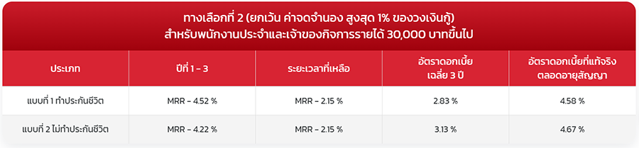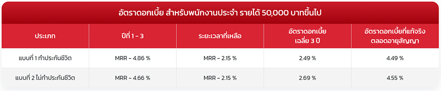 *อัตราดอกเบี้ยที่แท้จริงข้างต้นเป็นเพียงตัวอย่างที่ใช้ในการคำนวณจากวงเงินสินเชื่อ 2 ล้านบาท ระยะเวลากู้ 15 ปี เท่านั้น