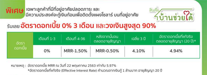 สินเชื่อบ้าน GREEN ZERO : สินเชื่อบ้านเพื่อติดตั้ง SOLAR ROOFTOP ฟรีดอกเบี้ย 0% 3 เดือน