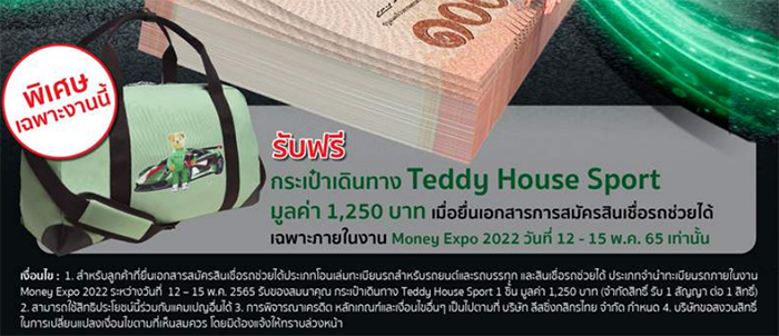 สินเชื่อรถช่วยได้ : รับกระเป๋าเดินทาง Teddy House Sport มูลค่า 1,250 บาท เมื่อยื่นเอกสารการสมัครสินเชื่อรถช่วยได้ภายในงาน