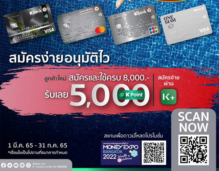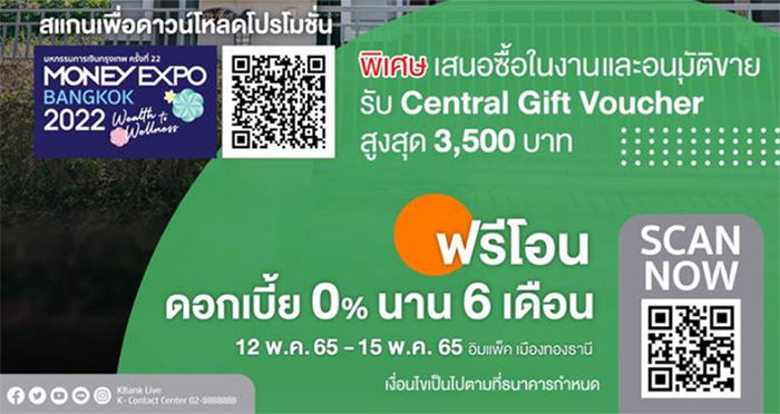 พบข้อเสนอสุดพิเศษที่บูธธนาคารกสิกรไทย ในงาน Money Expo 2022 วันที่ 12 - 15 พฤษภาคม 2565 ณ ชาเลนเจอร์ 2 - 3 อิมแพค เมืองทองธานี