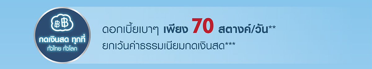 - ดอกเบี้ยเบาๆ เพียง 70 สตางค์/วัน** ยกเว้นค่าธรรมเนียมกดเงินสด***