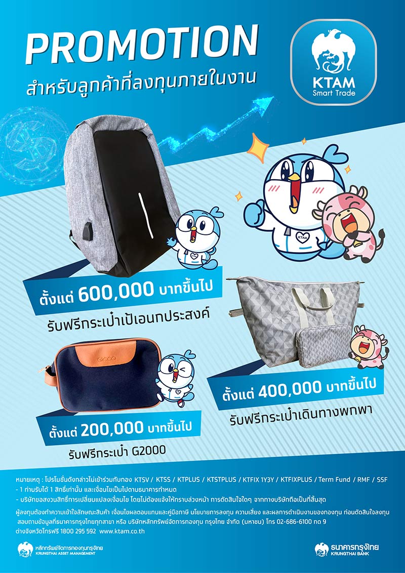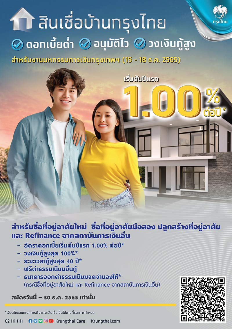 พบโปรโมชันสุดพิเศษ ที่บูธธนาคารกรุงไทย ในงานมหกรรมการเงินกรุงเทพส่งท้ายปี ครั้งที่ 5 ณ ศูนย์นิทรรศการและการประชุมไบเทค บางนา ระหว่างวันที่ 15 - 18 ธันวาคม 2565