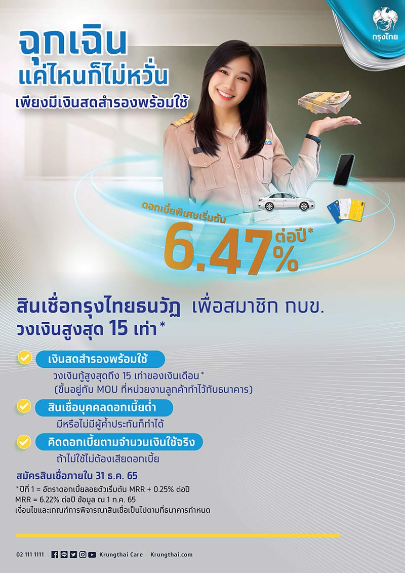 สินเชื่อกรุงไทยธนวัฏ เพื่อสมาชิก กบข. : ฉุกเฉินแค่ไหนก็ไม่หวั่น เพียงมีเงินสดสำรองพร้อมใช้