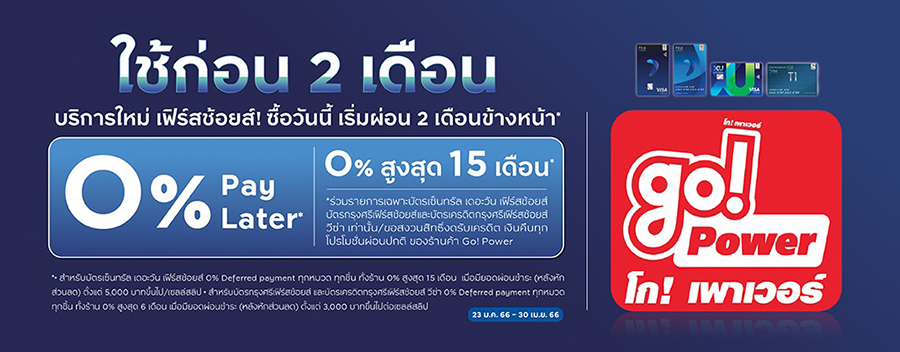 ใช้ก่อน...ผ่อนทีหลัง* บริการใหม่ เฟิร์สช้อยส์! ซื้อวันนี้ เริ่มผ่อน 2 เดือนข้างหน้า ที่ โก! เพาเวอร์ ทุกสาขา