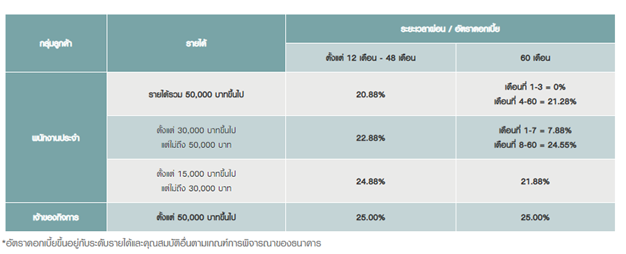 - เงื่อนไขและอัตราดอกเบี้ยเป็นไปตามที่ธนาคารกำหนด