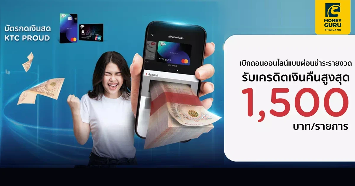 พิเศษสุด เฉพาะสมาชิกบัตรกดเงินสด KTC PROUD เบิกเงินออนไลน์ รับเครดิตเงินคืน สูงสุด 1,500 บาทต่อรายการ ไม่จำกัดจำนวนเงินคืนสูงสุด เมื่อเบิกถอนเงิน