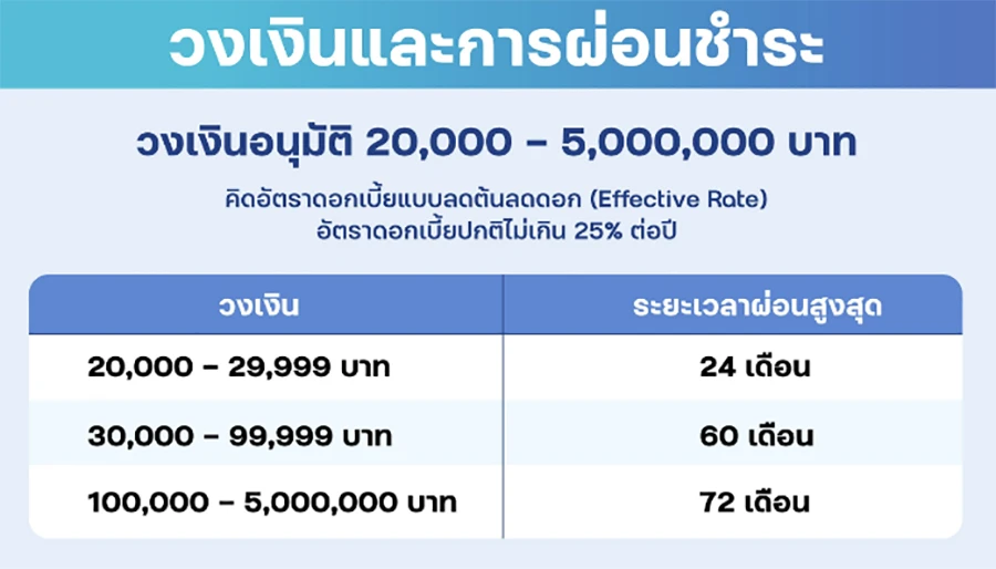 - หลักเกณฑ์การอนุมัติสินเชื่อ และเงื่อนไขอื่นๆ เป็นไปตามที่บริษัทกำหนด