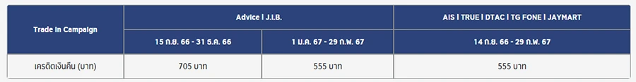 สำหรับ TRUE, DTAC, Jaymart, TG Fone, Advice, J.I.B. และร้านค้าอื่นๆที่ร่วมรายการ