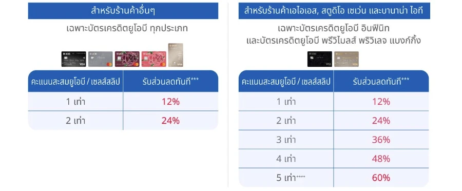 ****สำหรับร้านค้าเอโอเอส รับเครดิตเงินคืนสูงสุด 60% เฉพาะบัตรเครดติตยูโอบี อินฟินิก