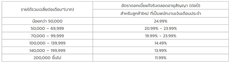 - มีรายได้ประจำต่อเดือนตั้งแต่ 20,000 บาทขึ้นไป (รับเงินเดือนผ่านบัญชีธนาคาร)