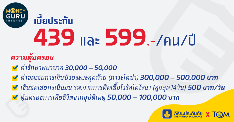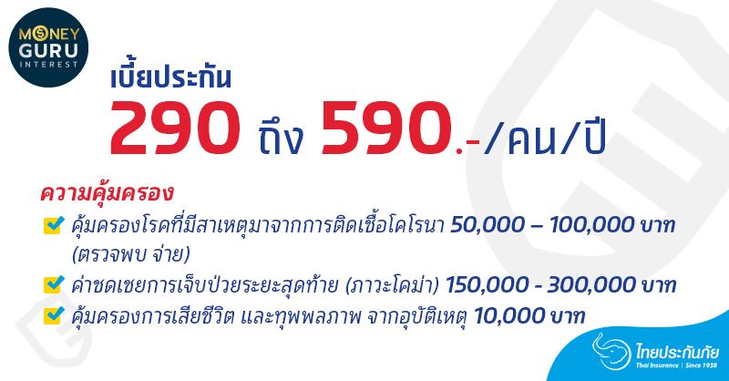 - คุ้มครอง การรักษาพยาบาลจากการติดเชื้อ ไวรัสโคโรนา (โควิด-19) 50,000 บาท/ปี