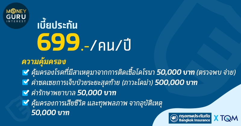 - คุ้มครองโรคที่มีสาเหตุมาจากการติดเชื้อโคโรนา 50,000 บาท