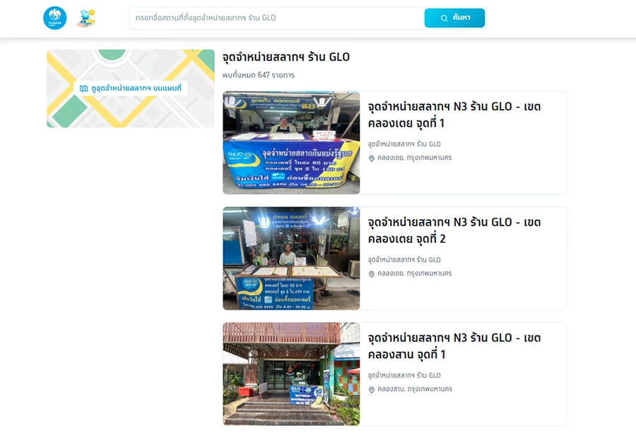 ตัวอย่างการเช็กจุดจำหน่ายสลากจากเว็บไซต์ tungngern.krungthai