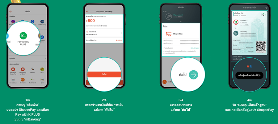 - สิทธิพิเศษนี้สำหรับลูกค้าที่ทำรายการเติมเงินเข้า ShopeePay Wallet ผ่าน K PLUS ขั้นต่ำ 800 บาท ต่อรายการ จะได้รับ Shopee Coins บนแอปพลิเคชันช้อปปี้เพย์ (ShopeePay) ภายใต้เงื่อนไขดังนี้