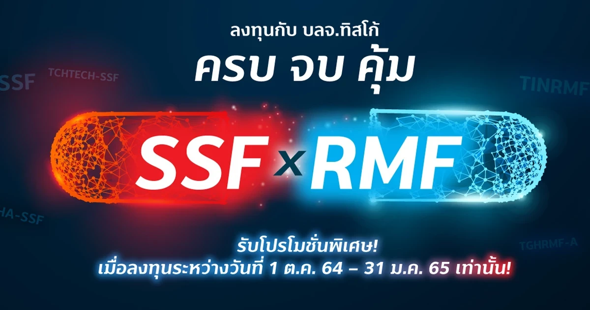 - (1) สงวนสิทธิ์สำหรับลุกค้าบุคคลธรรมดาที่มียอดเงินลงทุนกองทุน SSF/RMF ที่ร่วมรายการ ระหว่างวันที่ 1 ต.ค. 64 - 31 ม.ค. 65 โดยยอดเงินลงทุนทุกๆ 50,000 บาท จะได้รับหน่วยลงทุนกองทุนเปิด ทิสโก้ พันธบัตรระยะสั้น ("TISCOSTF") มูลค่า 100 บาทสูงสุด 1,000 บาท