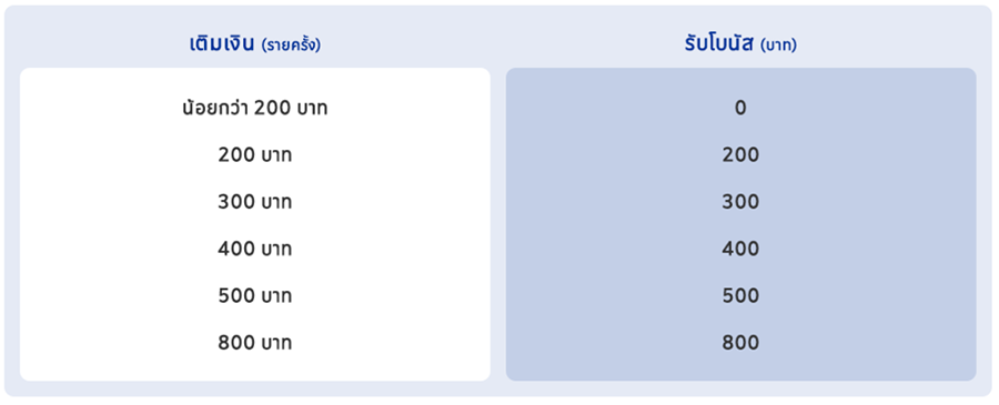 - ลูกค้าจะได้รับโบนัสหลังจากทำรายการเติมเงินตามเงื่อนไขที่กำหนดและได้รับ SMS ยืนยัน