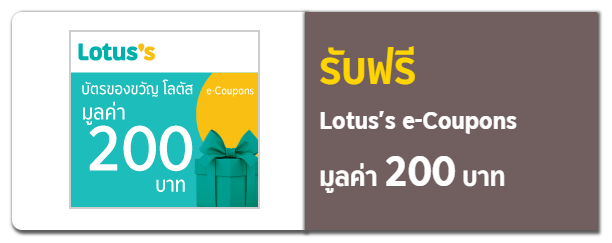 - สามารถใช้ซื้อสินค้าที่โลตัส ทุกสาขา และต้องใช้ก่อนวันหมดอายุ