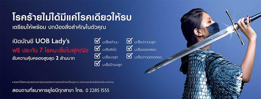 เปิดบัญชี ฟรีประกัน 7 โรคมะเร็งสำหรับผู้หญิง เพียงเปิดบัญชีเงินฝาก UOB Lady's savings รับความคุ้มครองสูงสุด 2 ล้านบาท*