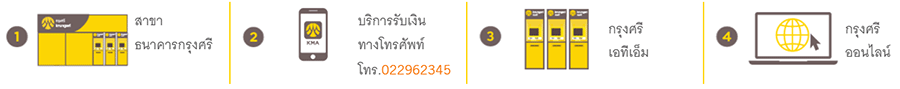 (สาขาหรือสำนักแลกเปลี่ยนเงินตราต่างประเทศ / โทรศัพท์ / กรุงศรี เอทีเอ็ม / กรุงศรี ออนไลน์)