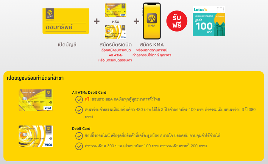 - สำหรับผู้ที่เน้นเรื่องความคุ้มค่า และไม่มีความจำเป็นต้องเดินทางไปต่างจังหวัดบ่อยๆ เลือกบัญชีเงินฝากออมทรัพย์ปกติ พร้อมทำบัตรเดบิตคุ้มเรื่องค่าธรรมเนียมรายปี