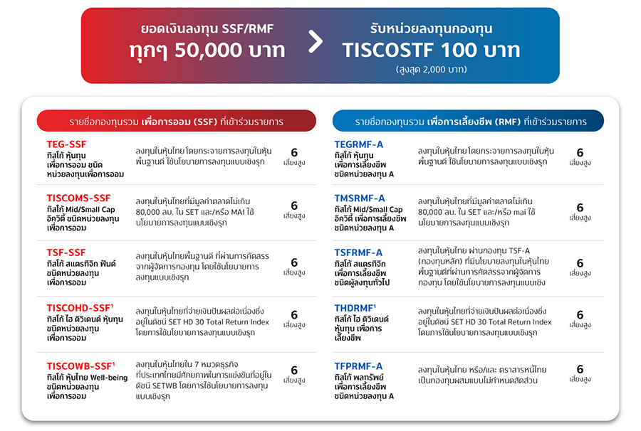พิเศษ! รับหน่วยลงทุน TISCOSTF สูงสุด 2,000 บาท เมื่อลงทุนกองทุนรวมหุ้นไทยที่เข้าร่วมรายการ