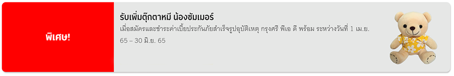 - ของกำนัลจะถูกจัดส่งให้ลูกค้าตามที่อยู่ที่แจ้งไว้กับบริษัทประกันที่ท่านสมัครกรมธรรม์ ภายใน 90 วันหลังจากจบรายการส่งเสริมการขาย