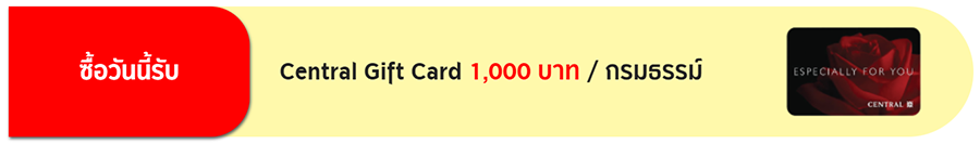 - Central Gift Card จะถูกจัดส่งผ่านทางไปรษณีย์ให้แก่ลูกค้าภายใน 90 วัน นับจากวันที่ชำระค่าเบี้ยประกันและบริษัทผู้รับประกันได้อนุมัติกรมธรรม์เรียบร้อยแล้ว