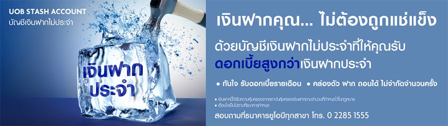 - บัญชีเงินฝากไม่ประจำ www.uob.co.th/stash - เงินฝากนี้ได้รับความคุ้มครองจากสถาบันคุ้มครองเงินฝาก ตามจำนวนที่กำหนดไว้ในกฎหมาย