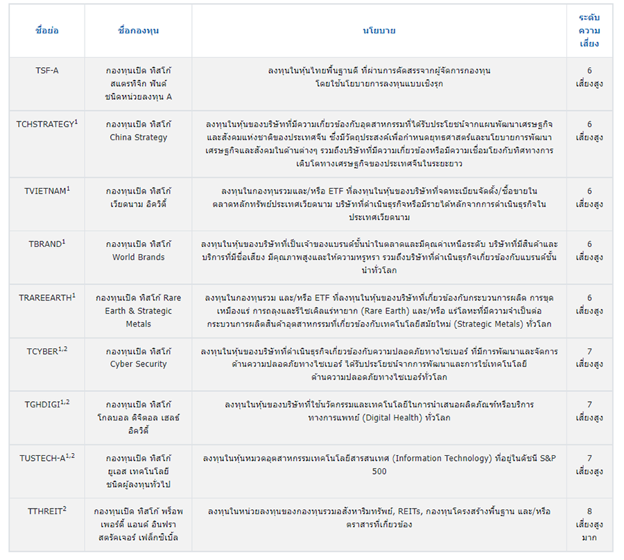 รายชื่อกองทุนที่เข้าร่วมโปรโมชั่น