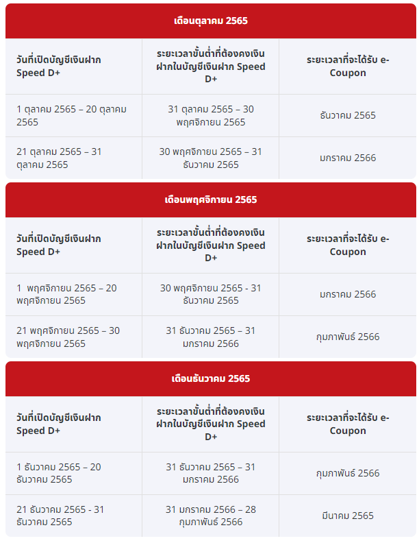 - ลูกค้าต้องเปิดบัญชีเงินฝาก Speed D+ ตามรายละเอียด “การเปิดบัญชีเงินฝาก Speed D+ เพื่อเข้าร่วมรายการ” ข้างต้น