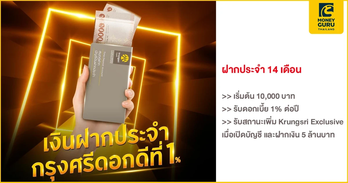 - บัญชีเงินฝากประจำพิเศษ 14 เดือน อัตราดอกเบี้ย 1.00% ต่อปี