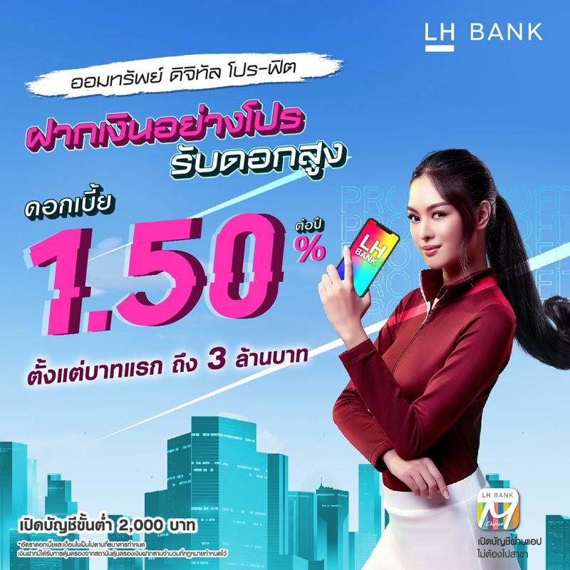 เปิดประสบการณ์การออมเงินของคุณให้สมาร์ทยิ่งกว่าที่เคย พร้อมตอบโจทย์การใช้ชีวิต ทุกไลฟ์สไตล์ให้ดียิ่งกว่า ด้วยอัตราดอกเบี้ยที่สูง 1.50% ต่อปี ตั้งแต่บาทแรกถึง 3 ล้านบาท (เมื่อเปิดบัญชีผ่าน LH Bank M Choice ยืนยันตัวตนที่เคาน์เตอร์เซอร์วิส ณ ร้าน 7-Eleven และฝากเงินขั้นต่ำจำนวน 2,000 บาท ภายในสิ้นวัน ณ วันที่เปิดบัญชี)