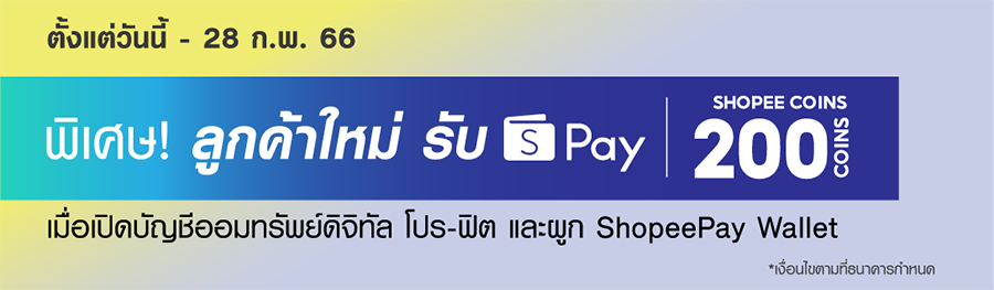 พิเศษสำหรับลูกค้าใหม่! เมื่อเปิดบัญชีออมทรัพย์ดิจิทัล Pro-Fit ครั้งแรก พร้อมผูกบัญชีกับ ShopeePay Wallet รับ 200 ช้อปปี้คอยน์ (Shopee Coins)
