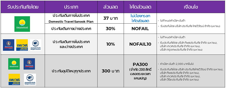 - รับประกันภัยโดย บริษัท ประกันภัยไทยวิวัฒน์ จำกัด (มหาชน), บริษัท ทิพยประกันภัย จำกัด (มหาชน), บริษัท เทเวศประกันภัย จำกัด (มหาชน), บริษัท วิริยะประกันภัย จำกัด (มหาชน), บริษัท กรุงเทพประกันภัย จำกัด (มหาชน)